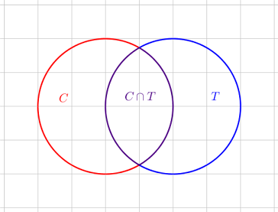 Calculando o número de elementos da união do conjunto $C$ e do conjunto $T$: $n\left ( C\cup T \right )$:
